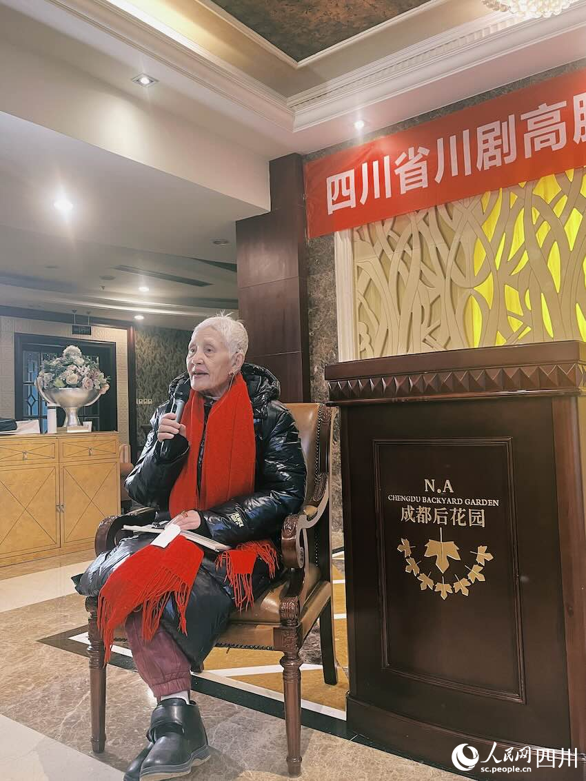 川劇第一代女幫腔,重慶市川劇院川劇演員戴彩萍回憶幫腔歷程。人民網記者 郭瑩攝