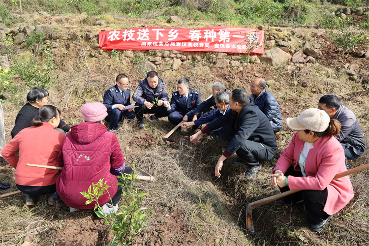 達州市稅務局聯合宣漢縣農業農村局深入田間地頭,為定點幫扶村茶河鎮長坪村開展“農技送下鄉 春種第一課”活動,為村民們送去春耕第一課。