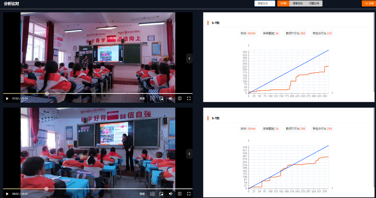 課堂互動分析借助S-T圖,清晰呈現教師和學生活動占比,讓教學互動情況一目了然。