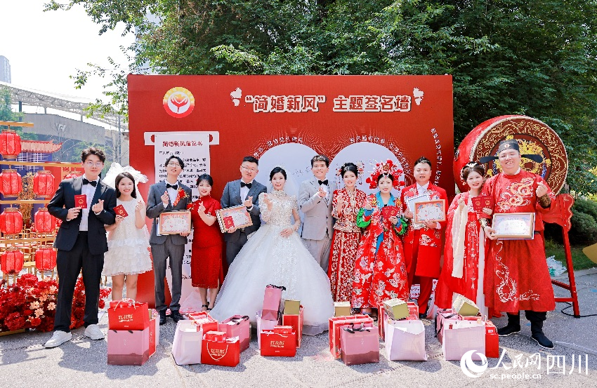 在登記現場,記者發現改變的不只是辦證流程、資料,還有新人的儀式感。5月20日,錦江區民政局與相關部門攜手為6對新人打造了一場跨越時光、融合公益的溫暖婚禮。區別于傳統婚禮形式,本次活動特別融入慈善元素,將婚禮與公益融合。每對新人均參與慈善捐贈,用“愛的儀式”延展為“愛的行動”。