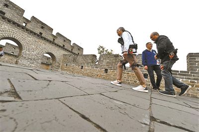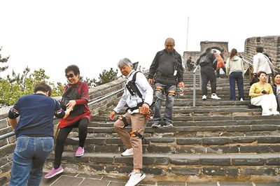作為舉世聞名的旅游勝地,八達嶺長城每年都會吸引成千上萬的中外游客慕名前來。出于曾經的軍事考慮,“因地形,用險制塞”是八達嶺長城修筑的重要特征。對許多游客,特別是一些高齡和行動不便的游客來說,攀爬陡峭的臺階無疑是對體力和耐力的一大挑戰。北京青年報記者日前在探訪中了解到,八達嶺景區剛剛上新引入了“外骨骼機器人”,可以最大限度地輔助游客輕松攀登,幫助更多人實現成為好漢的旅行心愿。