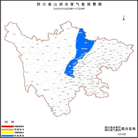 5月26日17時,四川省水利廳、四川省氣象局聯合發布山洪災害藍色預警。
