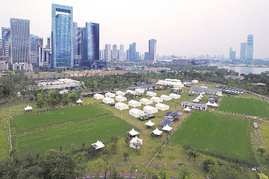 記者了解到,天府公園場館中心棚房和帳篷等臨建器材均由成都世運會執委會配發。成都世運會執委會在招采的進程中,嚴格遵循節儉辦賽原則,通過吸引贊助的形式,總計有超過2萬平方米的棚房、帳篷等臨建物資免費服務成都世運會,比賽結束后贊助方將對物資進行回收,實現循環利用。