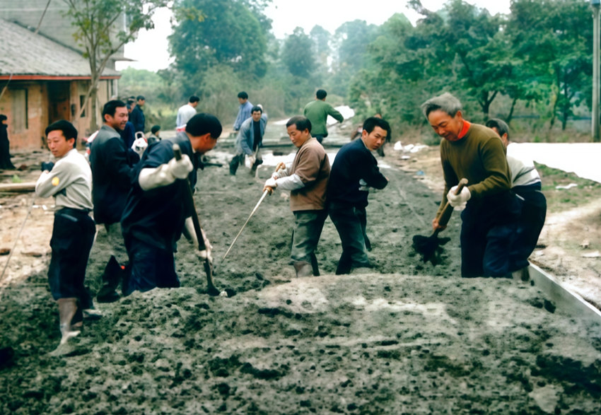 20世紀80年代,眉山縣修路場景。眉山市黨史和地方志編纂中心供圖