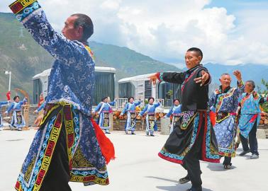 ③阿壩州理縣桃坪鎮佳山村村民一起跳民族舞蹈。