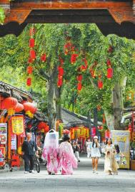 既要守好古城“老樣子”,也要深挖自身文化積淀,積極擁抱新業態。在四川,不少古鎮古城用“影視+”“演藝+”帶動人氣,探索文旅“新路子”。眉山柳江古鎮抓住獨特的川西建筑風貌和厚重的文化底蘊,吸引《我叫張思德》等影視劇組前來取景,成功孵化“影視+文旅”新業態,去年,古鎮接待游客量突破385萬人次。南充閬中古城推出大型實景文旅演藝劇目《閬苑傳奇》,配合360度全景舞臺、裸眼3D等,將三國時期的金戈鐵馬和閬苑仙境帶進劇場,千年古城新意盎然。