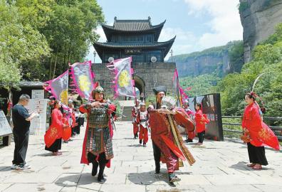 6月25日,劍門關前上演的《姜維開關》情景劇。四川日報全媒體記者 華小峰 攝