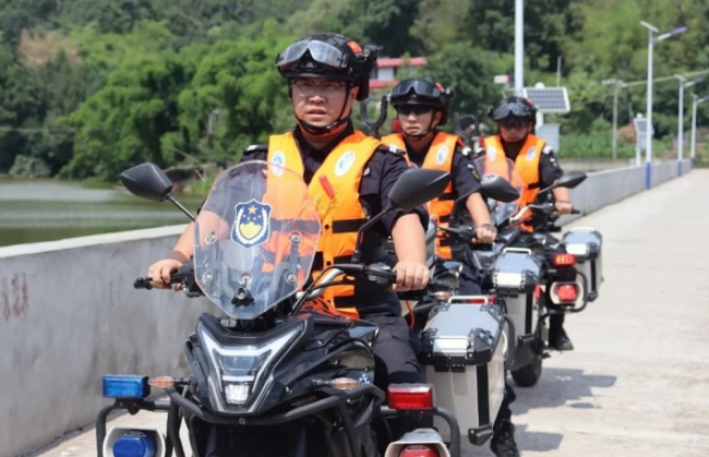 演練結合當前汛期防汛救援工作和溺水警情處置的特點和實戰需求,分步組織開展鐵騎快速救援、無人機拋投救生圈、警犬救援、沖鋒舟救援等多種專業救援技能科目。