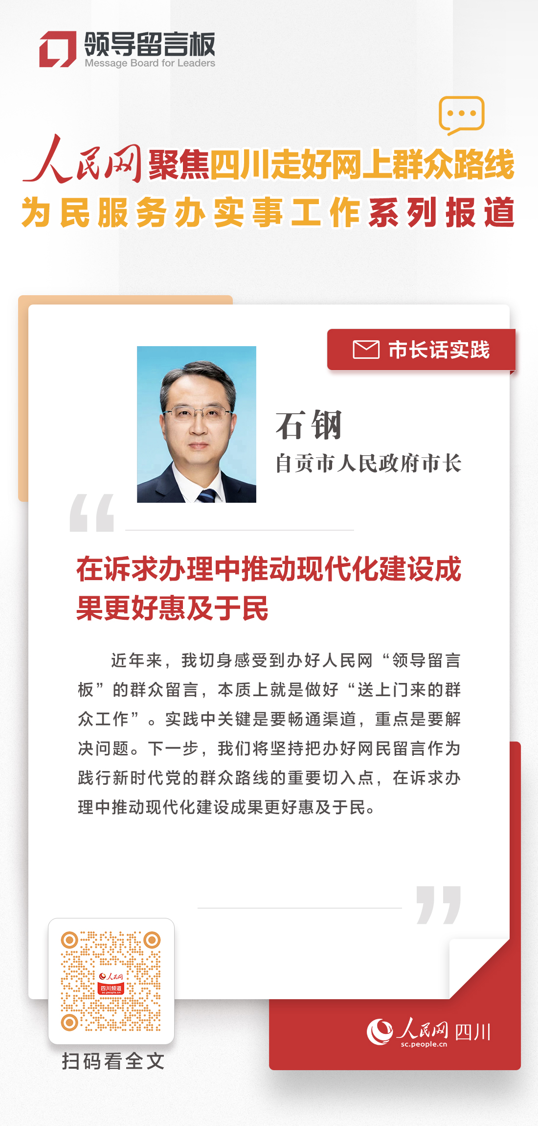 市長話實踐 | 自貢市市長石鋼:在訴求辦理中推動現代化建設成果更好惠及于民