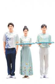 新中式成都世運會儀式服飾(左為旗手服飾,右為男女頒獎服飾)。本版圖片除署名外均由四川日報全媒體記者 何海洋 攝