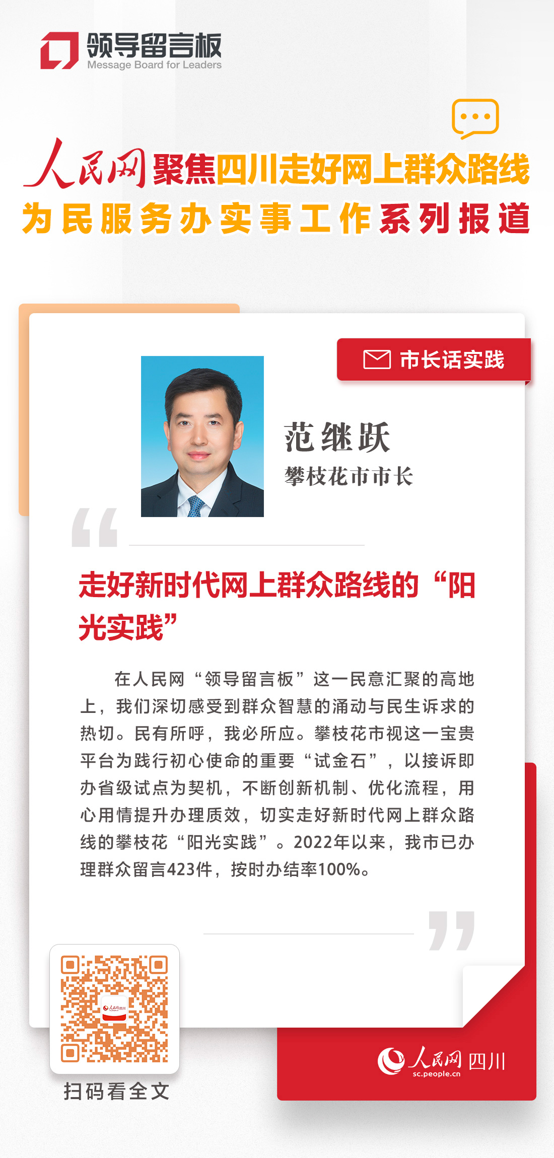 市長話實踐|攀枝花市市長范繼躍:走好新時代網上群眾路線的“陽光實踐”