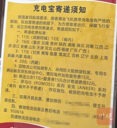 成都兩機場:充電寶可郵寄,運費之外再加15元