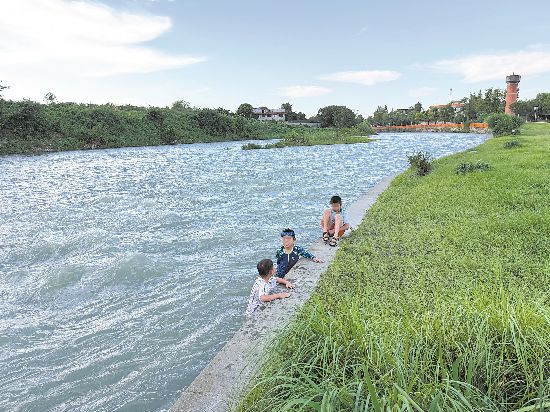 “臨邊危險,河道水急,注意安全,請勿下河”,記者指著河邊綠化帶里警示牌上的告誡語問玩水的大人小孩,他們笑笑不答。