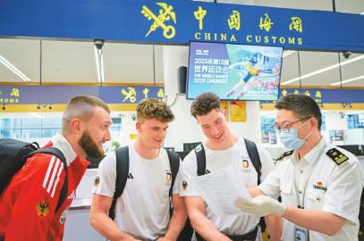 海關關員引導世運會涉賽人員入境。成都海關供圖