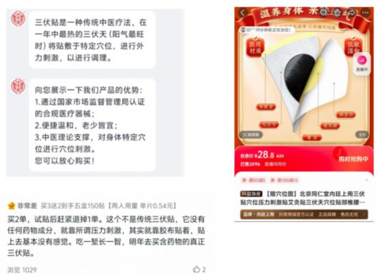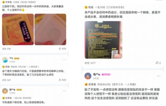 在電商平臺上,不少消費者購買后發現三伏貼不含中藥成分,被誤導消費。