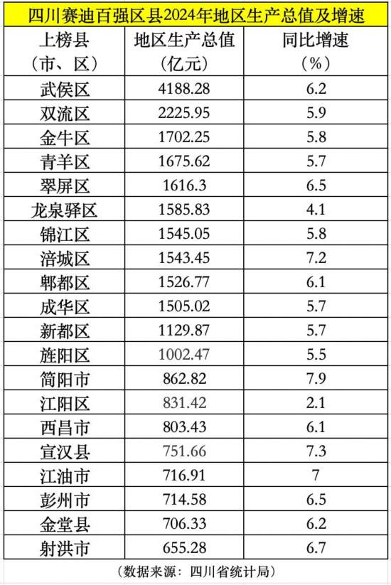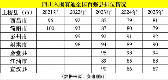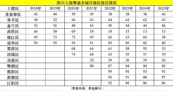 8月5日,賽迪顧問發布“2025賽迪百強區”榜單,四川共有13個區入選;此前發布的2025年全國百強縣名單中,四川亦有7地入圍。