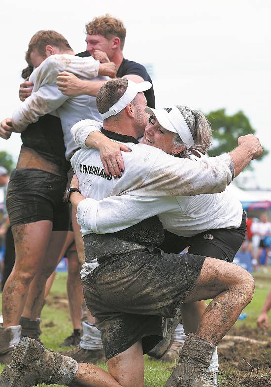 拔河比賽后,慶祝勝利的德國運動員們。