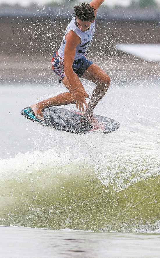 美國選手在滑水男子尾波沖浪沙板風格決賽中。