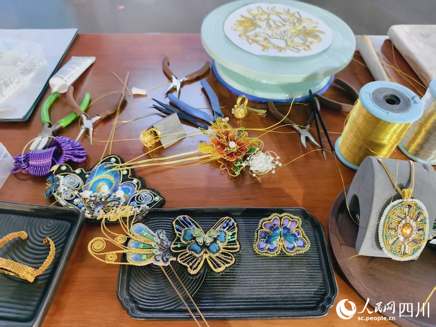 四川大學博物館成都銀花絲制作體驗中教師展示的銀花絲作品。人民網記者 郭瑩攝