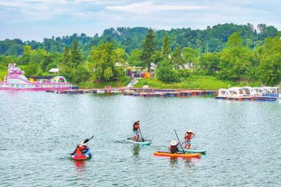 8月15日,雅安市名山區的百丈湖水上運動休閑俱樂部吸引了不少游客前往,享受水上運動的樂趣。 雅安觀察 黃剛 攝