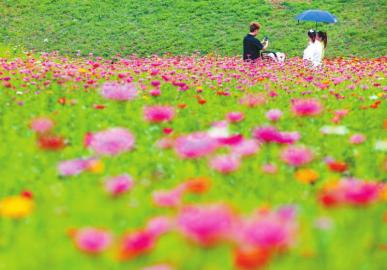 8月,在滎經縣龍蒼溝鎮的桌山花棲谷內,以百日菊為主的30余畝花田花開正盛。 雅安觀察 黃剛 攝