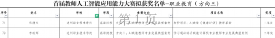 “此次大賽成績不僅反映了我校教師扎實的專業功底和創新能力,也是學校持續推進“三教改革”、構建“崗課賽證”融合育人模式的具體成果?!边_州職業技術學院相關負責人表示,學校將以本次大賽為契機,進一步深化“人工智能+職業教育”模式創新,推動人工智能技術在課堂教學、實習實訓、教學管理等方面的全過程應用,進一步完善“產教融合、科教融匯”的數字賦能人才培養機制,為職業教育高質量發展注入新動能。(川觀新聞達州頻道 張海波 達州職業技術學院供圖)