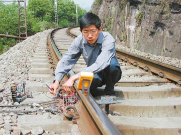 翟婉明在鐵道上做試驗。 受訪者供圖