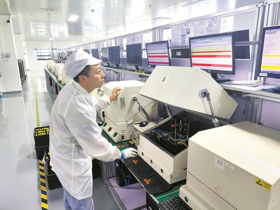 近日,在成都東部新區臨空制造工業總部基地(一期)內,隨著一臺臺組裝完成的產品源源不斷下線,首個入駐企業——成都緯聯弘科技發展有限公司正式投產。公司SMT組裝事業部總經理鄧平介紹,新廠區生產面積較以往更大,達到2萬平方米,各產線布局更為緊湊,大幅提高了生產效率。