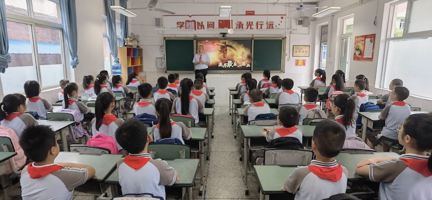 9月12日,黃擁軍走進黃繼光紅軍小學,為孩子們帶去一堂生動的思政課。中江縣委宣傳部供圖
