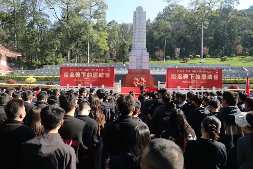 宜賓市賡續·2025·清明祭英烈“紀念碑下的思政課”活動現場。宜賓市退役軍人事務局供圖