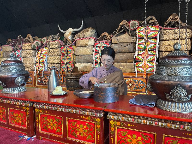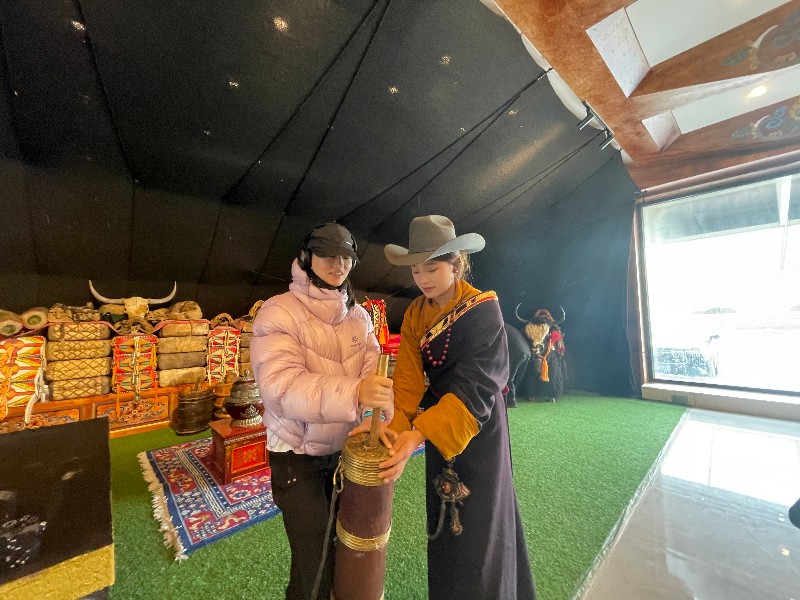 龍燈牧場最初的走紅,源于“世界最大牦牛毛帳篷”這一視覺爆點。但運營團隊很快意識到,僅靠打卡拍照難以持久吸引游客?!褒垷舨菰旧砭褪怯文廖幕顟B傳承地,我們要讓游客真正體驗牧區生活?!钡梨诳h旅發公司總經理王艷表示。
