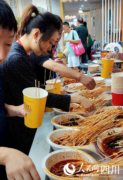 賽前球迷們在嘉年華享受樂山缽缽雞。人民網 羅昱攝
