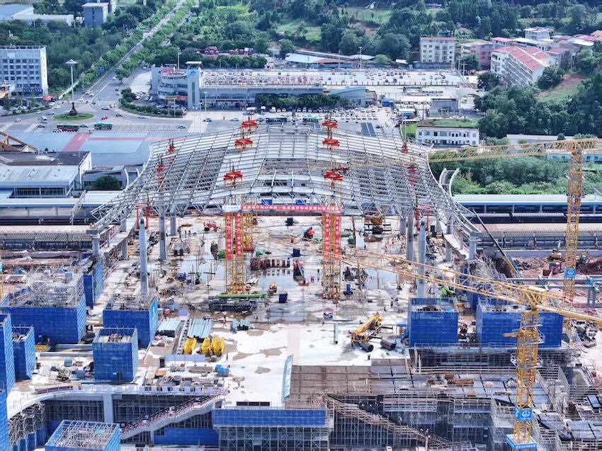 人民網成都9月23日電 (記者郭瑩)隨著800噸屋蓋網架鋼結構一次吊裝完成,新建成都至達州至萬州鐵路(以下簡稱“成達萬高鐵”)遂寧站北站房主體工程近日完工,距離成達萬高鐵按期通車再進一步。