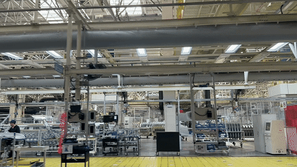 總裝車間內,3000多臺機器人協同運作,AI視覺檢測系統十幾秒即可完成單一零部件數十個卡口的全面檢測。這座工廠實現焊接、噴涂100%自動化,每30秒就可有一臺問界M9下線。