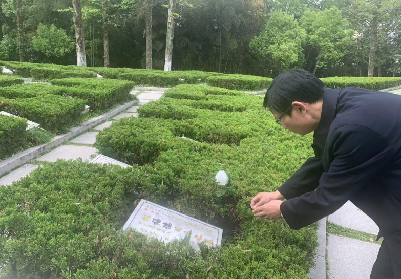 4月18日,尋親工作組趕赴解放一江山島烈士陵園,翻閱了陵園烈士資料及黨史記載,在解放一江山島壯烈犧牲的454名烈士中找到張福德烈士的名字。隨后,尋親工作組在張福德烈士墓前,舉行莊重緬懷儀式,并敬獻鮮花。