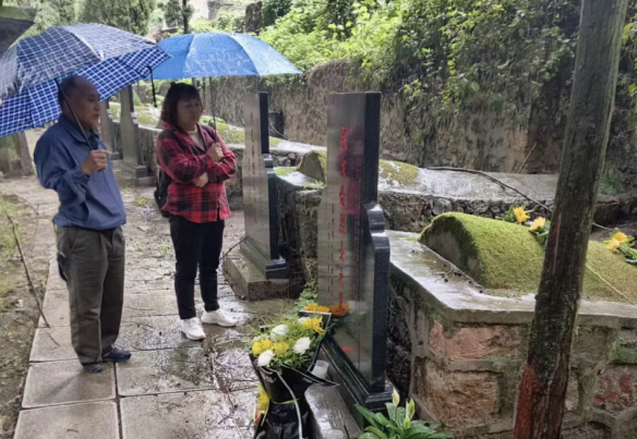 5月27日,恩陽區退役軍人事務局為梁發倫烈士親屬們安排了一場特殊的尋親祭掃,在尋親工作人員的熱情陪伴下,梁敏等4位親屬分別從海南???、廣東深圳等地來到盤縣革命烈士陵園祭拜梁發倫烈士,梁學倫、梁玉華站在其兄梁發倫烈士墓前熱淚盈眶,傾訴家人的思念和牽掛,同時協調盤州市退役軍人事務局相關負責人員,帶領他們重走一遍梁發倫烈士最后的生活足跡,為梁發倫烈士獻上寄托哀思的鮮花,圓了烈屬們五十余年的尋親夢。