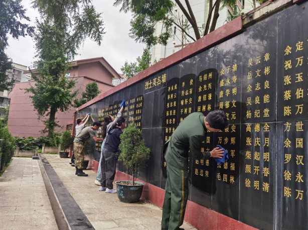 儀式尾聲,眾人手持菊花,有序走向烈士墓區。大家用抹布仔細擦拭碑面和英名墻?!懊總€名字都是鮮活的英雄,擦凈墓碑,是為了讓后人永遠記得他們為誰而戰?!币幻艘圮娙耸聞障到y干部對身邊學生說。