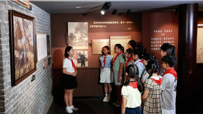 聆聽紅領巾講解員講述陳毅元帥的革命故事。