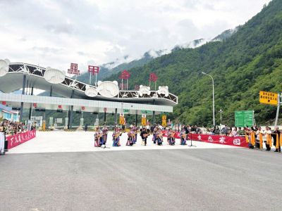 當天下午5點過,甲勿海收費站,附近的居民身著民族服飾聚集于此,跳起火圈舞,唱起南坪曲子,提前慶祝九綿高速通車。