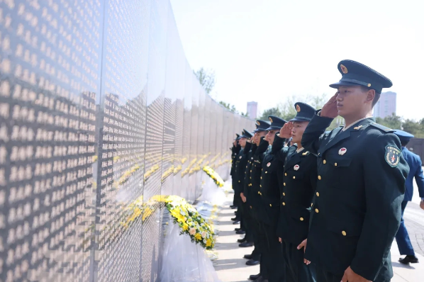 圖為參加安葬儀式的社會各界代表向烈士獻花致敬,并瞻仰烈士英名墻。曹舒昊 攝