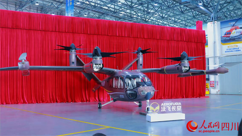 人民網成都9月29日電 (記者郭瑩、實習生王孜萱)紅色幕布徐徐拉開,一架外形新穎、線條流暢的電動垂直起降飛行器緩緩駛出機庫……今日上午10時許,在成都市金堂淮州新城通航產業園,由四川沃飛長空科技發展有限公司自主研制的AE200-100首架機正式下線。這標志著國內載客eVTOL研發進入新的里程碑——即將開啟載人試飛,正式邁入適航取證全面沖刺與量產機型預生產階段。