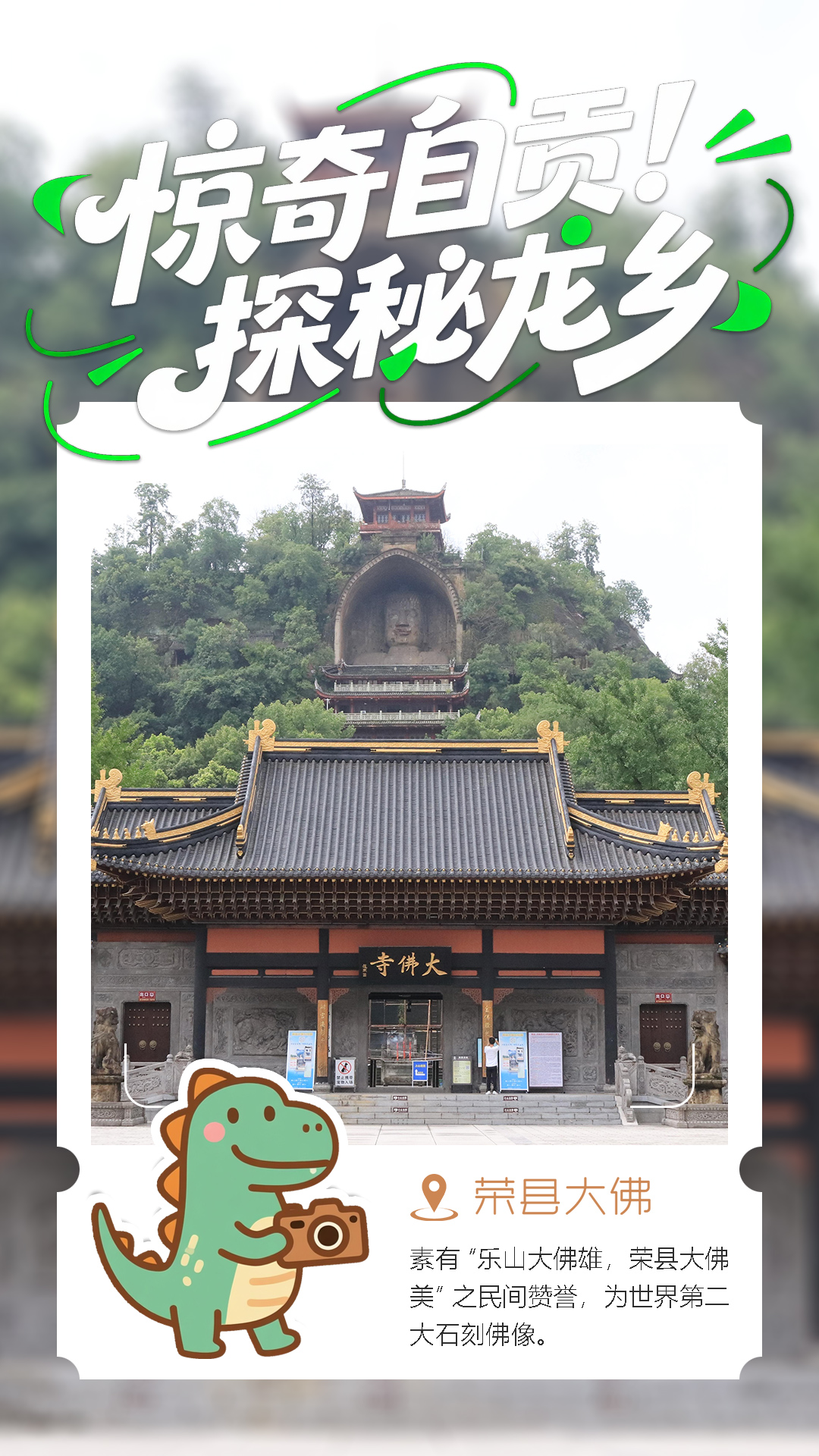 榮縣大佛景區:匯集鎮南塔、觀音閣等歷史古跡,融合自然山水與佛教文化,展現了“一城三佛”的獨特文化風貌,還可打卡“榮州三絕”。