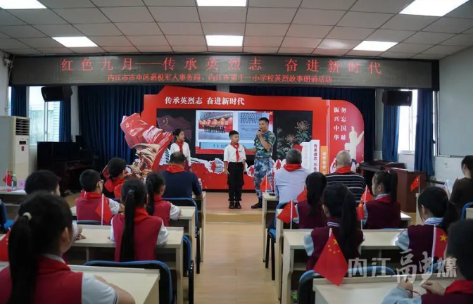 9月25日,內江市市中區退役軍人事務局攜手內江市第十一小學校共同舉辦“紅色九月——傳承英烈志 奮進新時代”英烈故事朗誦活動?;顒油ㄟ^沉浸式紅色教育,引導青少年厚植家國情懷,賡續紅色血脈。