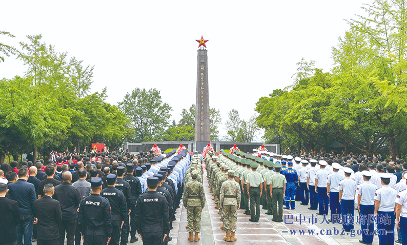 9月30日,巴中市向人民英雄敬獻花籃儀式在川陜蘇區紅軍將士英名紀念碑前廣場舉行。巴中融媒記者 夏雨 攝