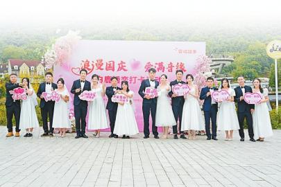 10月3日,成都市彭州白鹿音樂小鎮,“浪漫國慶·愛滿音緣”主題活動將小鎮化作一座被音符包圍的浪漫殿堂,為前來參與活動的一對對新人開啟幸福旅程。