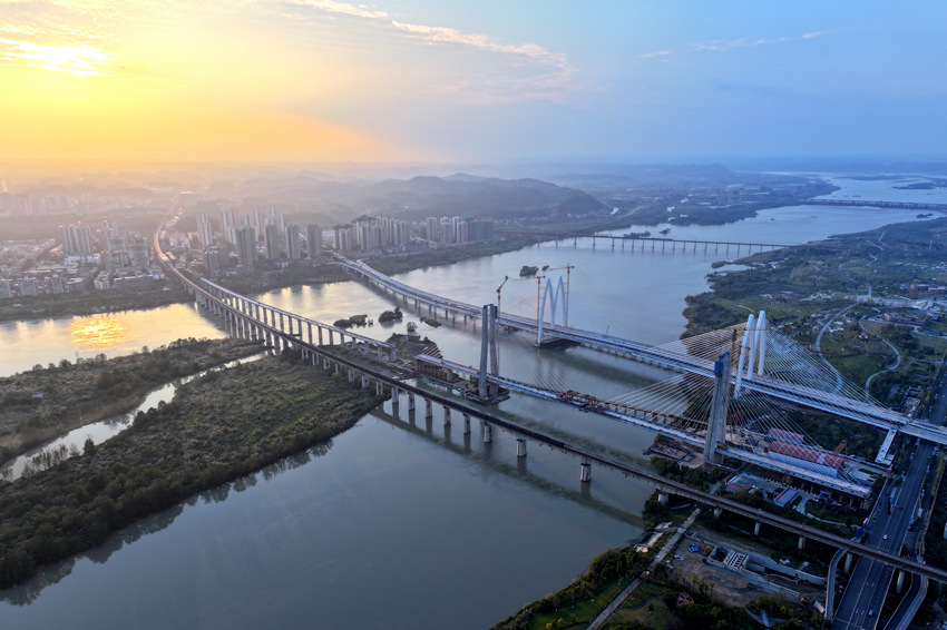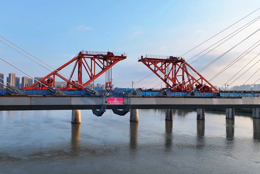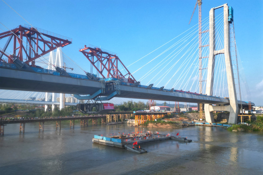 大橋正在進行最后的吊裝。成達萬高鐵公司供圖