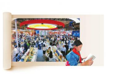 左:2025天府書展主展區。右:書展現場,一位身著民族服飾的小女孩專注地閱讀書籍。四川日報全媒體記者 向宇 攝
