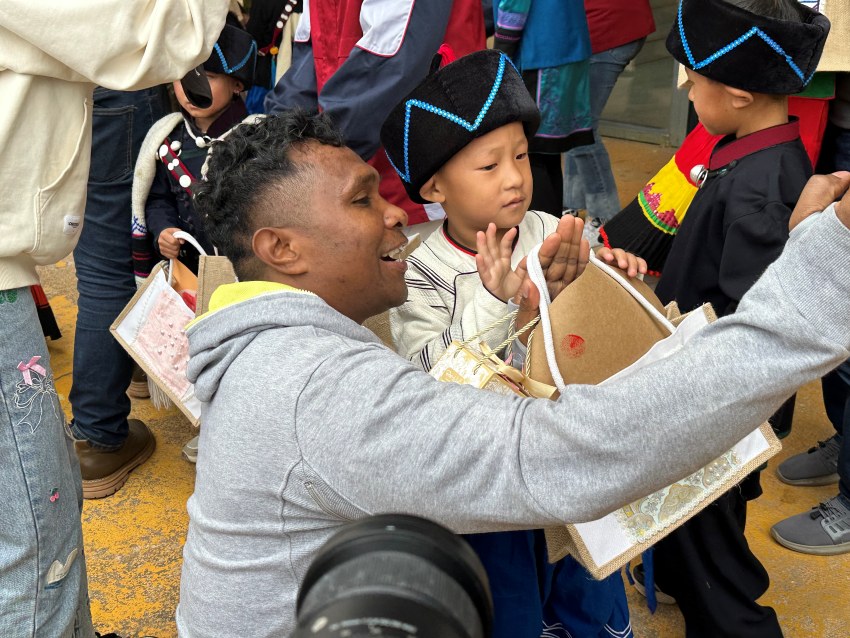當尼泊爾記者彎腰與孩子們交流時,一個孩子用彝語說出“zi mogeni”(吉祥如意)。在記者好奇的追問下,孩子們爭先恐后地當起了“小老師”,現場教外國記者們學起了彝語發音,清脆的笑聲在教室里回蕩。這份跨越山海的文化交流,成為一幅溫馨動人的畫面。