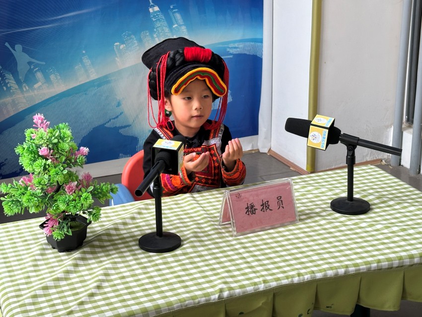 教室里,身著彝族傳統服飾的孩子們如同躍動的火焰,讓整個空間充滿民族風情與蓬勃朝氣。最特別的,當屬角落里的“快樂學普驛站”——這里經常會有小播報員坐在話筒前,用普通話朗誦詩歌、講述故事。