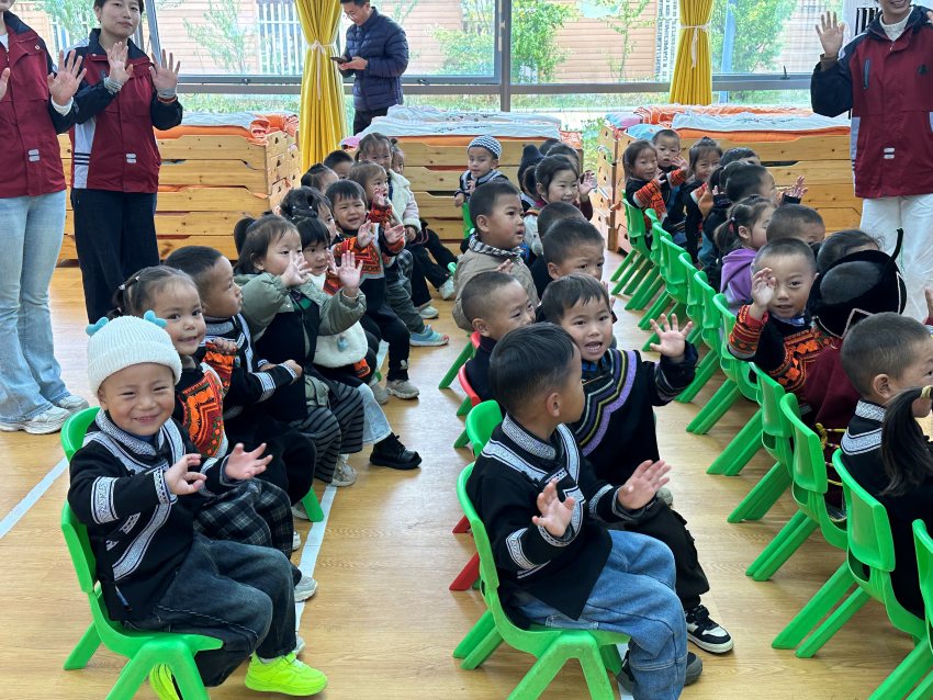 “叔叔好!”“阿姨好!”記者們在幼兒園門口剛下車,迎面就傳來了一陣清脆稚嫩的呼喊聲。昭美社區幼兒園的孩子們正用他們的熱情迎接這群來訪的外國客人。這些來自大涼山、有些曾經生活在“懸崖村”的彝族孩子,在這座寬敞明亮的現代化幼兒園里,快樂地成長著。